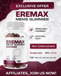 Eremax Gummies are a modern male enhancement supplement designed for men who want to support vitality, stamina, and overall performance in a simple, enjoyable way without relying on pills or complicated routines. Formulated in a chewable gummy format, Eremax Gummies aim to fit seamlessly into daily life while addressing common concerns such as low energy, reduced confidence, and declining performance that many men experience due to stress, aging, or lifestyle factors. The concept behind Eremax Gummies focuses on supporting the body’s natural processes rather than offering unrealistic or instant results, making them appealing to men who prefer a balanced, wellness-oriented approach. By incorporating carefully selected ingredients commonly associated with male wellness, circulation support, and energy production, Eremax Gummies are intended to help promote endurance, drive, and physical confidence over time when used consistently. Many men appreciate the discreet and pleasant gummy form, which removes the discomfort often associated with swallowing capsules and helps improve daily compliance. Eremax Gummies are also positioned as a supportive addition to a healthy lifestyle that includes proper nutrition, regular physical activity, and adequate rest, rather than a standalone solution. The male enhancement focus is centered on helping men feel more energized, motivated, and self-assured in both daily activities and intimate moments, which can positively influence overall quality of life. Unlike harsh formulations, Eremax Gummies are designed with ease of use in mind, making them suitable for men who want gradual, steady support without disrupting their routines. The consistent use of Eremax Gummies may help reinforce a sense of vitality and balance, supporting men as they work toward improved performance, stamina, and wellness goals. By emphasizing convenience, palatability, and daily support, Eremax Gummies represent a contemporary approach to male enhancement that aligns with modern wellness preferences, encouraging men to take a proactive role in maintaining their confidence, energy levels, and overall male health in a natural, approachable way. https://eremaxgummies.uk/