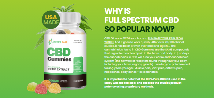 Nature’s Ease CBD Gummies for pain relief offer a thoughtful blend of nature, science, and convenience. By combining high-quality CBD with a user-friendly gummy format, they provide a simple way to support comfort, relaxation, and overall well-being. While no supplement is a cure-all, incorporating Nature’s Ease CBD Gummies into a balanced routine may help you take meaningful steps toward a more comfortable and active life—naturally. https://natureseasegummies.com/