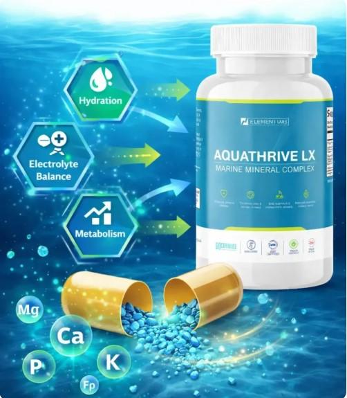 Aquathrive LX is a dietary supplement formulated with marine-derived minerals and trace elements. These nutrients are essential for maintaining proper bodily functions, including metabolism, hydration, and cellular health. The product focuses on delivering a natural and balanced blend of minerals sourced from ocean environments, which are known for their rich nutrient composition.