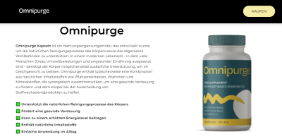 Omnipurge markedsføres almindeligvis som en naturlig formulering designet til at understøtte fordøjelsessundhed, afgiftning og generel tarmbalance. Omnipurge dagens hurtige livsstil er fordøjelsesproblemer som oppustethed, forstoppelse, sure opstød og ophobning af toksiner blevet mere og mere almindelige. Mange mennesker vender sig mod urtekosttilskud som en skånsom, men effektiv måde at genoprette den indre balance på, og Omnipurge-kapsler placeres ofte i denne kategori som en holistisk løsning.